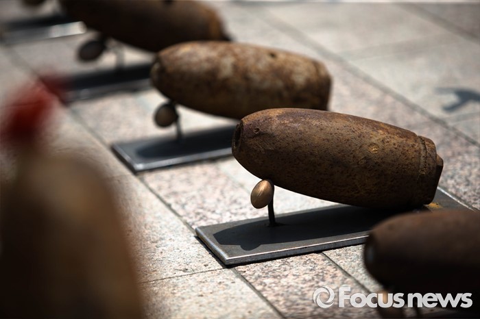(서울=포커스뉴스) 22일 오후 서울 중구 서울광장에서 '전쟁 없는 세상을 위한 에이이브이(Art's Eye View) 프로젝트 전시가 열리고 있다. 미공군의 사격장으로 쓰였던 경기도 매향리에서 반출된 포탄 및 탄피를 활용, 1000여점의 예술작품으로 만든 이번 전시는 오는 24일까지 열릴 예정이다.