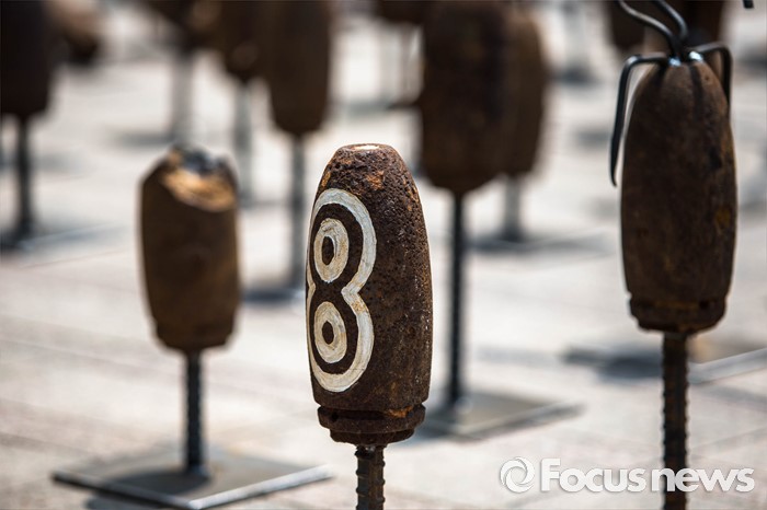(서울=포커스뉴스) 22일 오후 서울 중구 서울광장에서 '전쟁 없는 세상을 위한 에이이브이(Art's Eye View) 프로젝트 전시가 열리고 있다. 미공군의 사격장으로 쓰였던 경기도 매향리에서 반출된 포탄 및 탄피를 활용, 1000여점의 예술작품으로 만든 이번 전시는 오는 24일까지 열릴 예정이다.