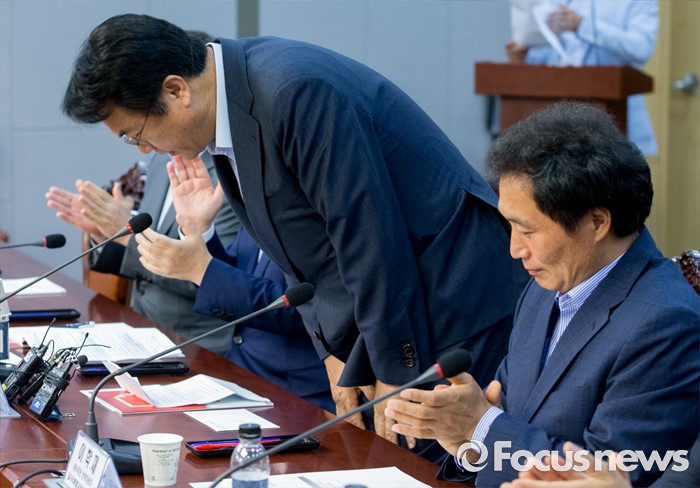 | △ 허리 숙여 인사하는 정진석 |