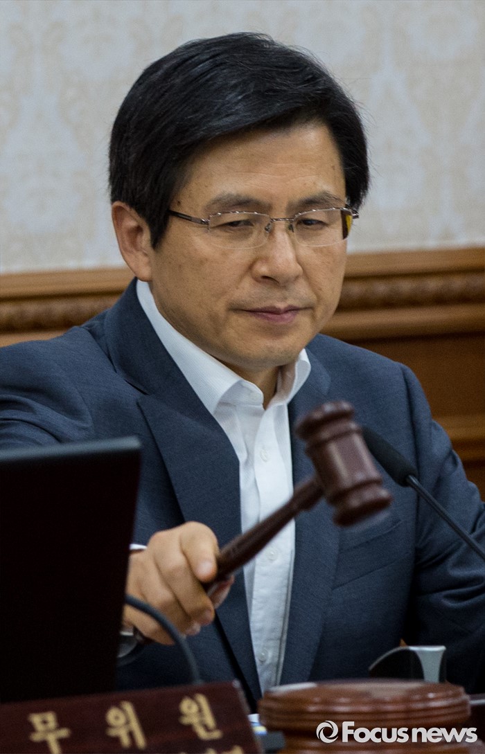 (서울=포커스뉴스) 22일 오후 서울정부청사에서 열린 임시 국무회의에 참석한 황교안 국무총리가 개회를 알리는 의사봉을 두드리고 있다. 정부는 이날 국무회의에서 추경의 세부안을 확정해 26일 국회에 제출할 계획이다.