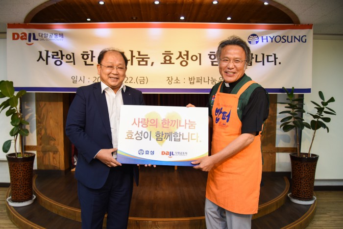 효성은 22일 다일공동체에서 벌이고 있는 '사랑의 한끼 나눔' 사업 후원을 위해 5000만원을 전달했다.