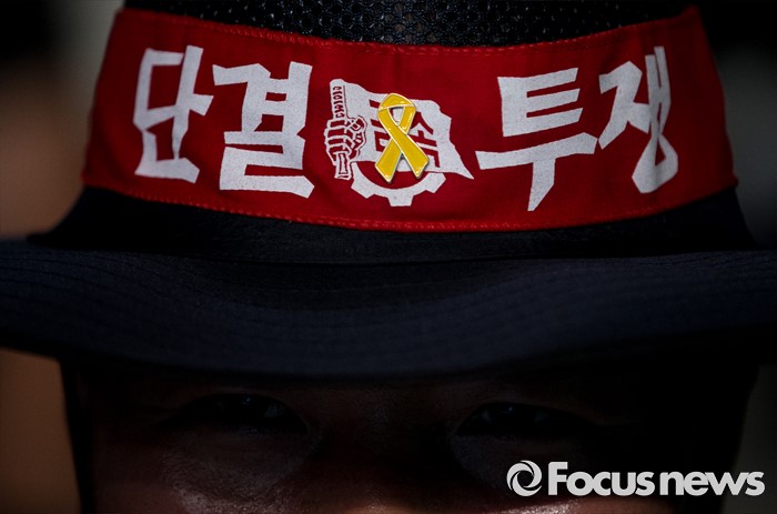 (서울=포커스뉴스) 22일 오후 서울 광화문광장에서 전국금속노동조합(금속노조)이 '재벌개혁'을 요구하며 2016 재벌개혁 시민한마당 행사를 진행하고 있다.