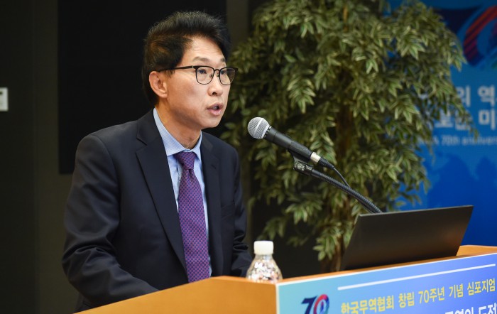 심포지엄을 주관한 김정관 한국무역협회 부회장은 "한국 무역은 위기를 기회로 바꿔왔고 시대 변화를 혁신의 계기고 삼으며 성장해 왔다"며 "예단하기 어려운 변화의 기로에서 오늘 이 자리가 재도약의 시발점이 되길 바란다"고 말했다.김정관 한국무역협회 부회장이 지난 22일 '한국무역협회 창립 70주년 기념 심포지엄'에서 개회사를 하고 있다. <사진제공=한국무역협회>