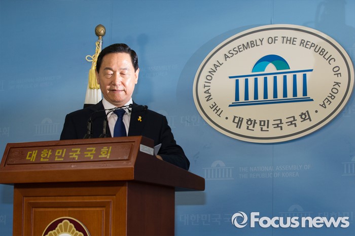 (서울=포커스뉴스) 김상곤 전 더불어민주당 혁신위원장이 24일 오전 서울 여의도 국회 정론관에서 당대표 출마 기자회견을 하고 있다.