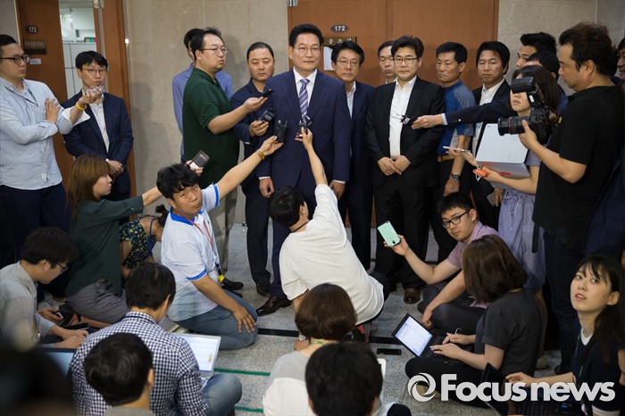 | △ 취재진에 둘러쌓인 송영길 의원 |