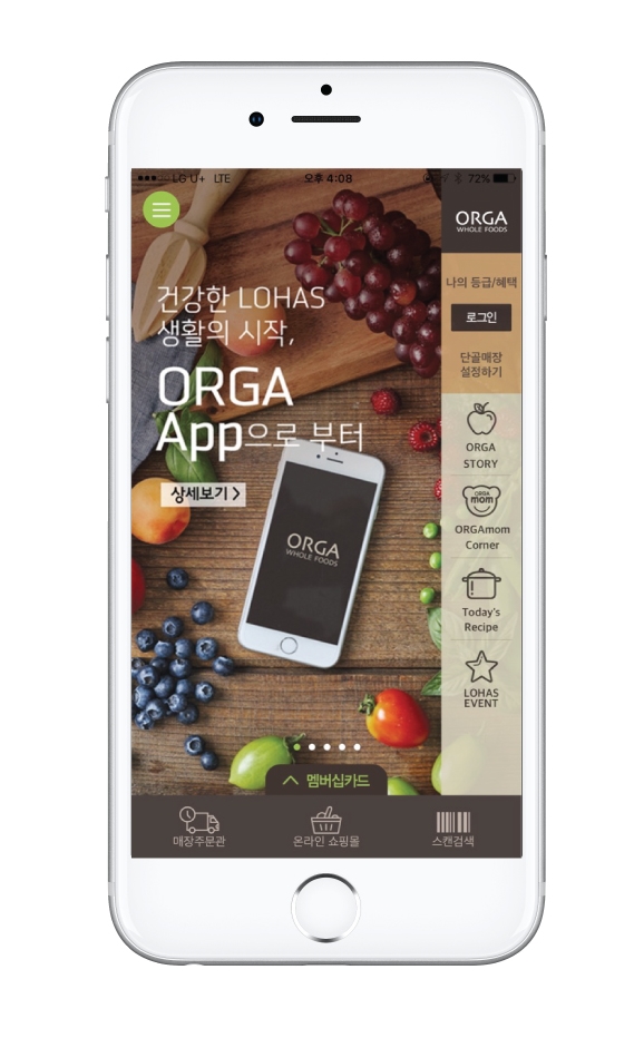 '올가 브랜드 앱'은 아이폰 앱스토어와 구글 플레이스토어에서 '올가홀푸드'를 검색해 다운로드 받을 수 있다.