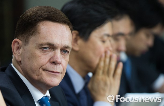 (인천=포커스뉴스) 요하네스 타머(왼쪽) 아우디폭스바겐 사장이 25일 오전 인천 서구 국립환경과학원에서 열린 차량 인증 조작 관련 환경부 청문회에 참석해 생각에 잠겨 있다.