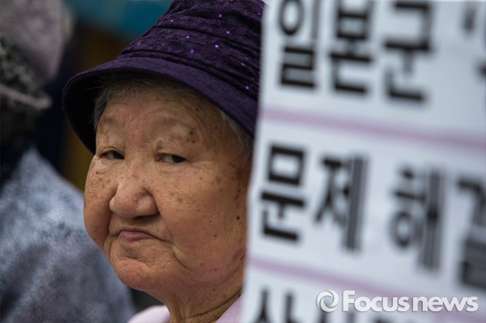 (서울=포커스뉴스) 25일 오전 서울 종로구 정부서울청사 앞에서 화해·치유재단 설립을 강행하는 정부를 규탄하는 정대협(한국정신대문제대책협의회) 및 일본군 위안부 피해자 할머니들의 집회가 열리고 있다.
