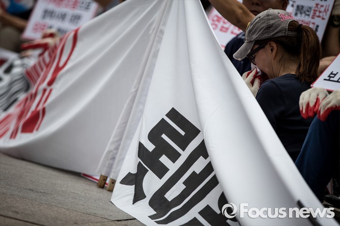 (서울=포커스뉴스) 25일 오전 서울 중구 롯데백화점 앞에서 열린 롯데홈쇼핑 협력사 비상대책위원회 생존권 보장 촉구 집회에 참석한 한 회원이 눈물을 훔치고 있다.