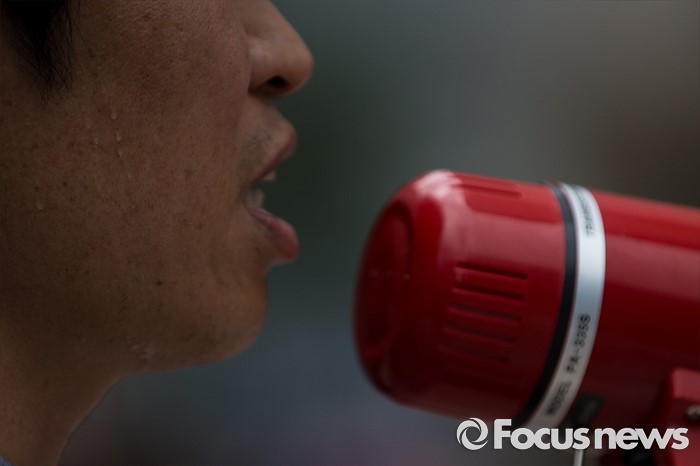 (서울=포커스뉴스) 25일 오전 서울 중구 롯데백화점 앞에서 롯데홈쇼핑 협력사 비상대책위원회원들이 생존권 보장을 촉구하며 집회를 열고 있다.