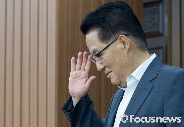 (서울=포커스뉴스) 26일 오전 서울 여의도 국회에서 열린 국민의당 의원총회에 참석한 박지원 비상대책위원장이 손인사를 하고 있다.