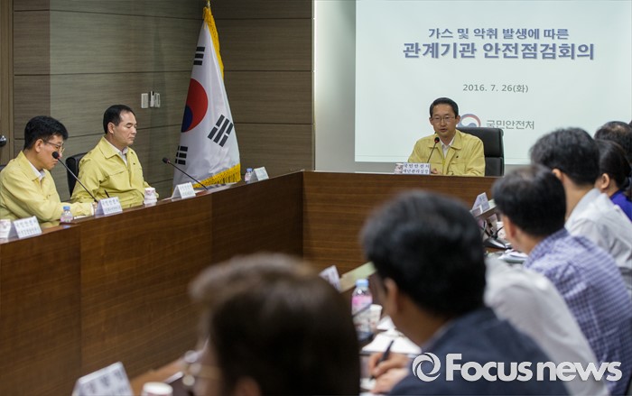 (서울=포커스뉴스) 26일 오전 정부서울청사에서 열린 가스 및 악취 발생 관계기관 안전점검회의에 참석한 김희겸 국민안전처 재난관리실장이 모두발언을 하고 있다.