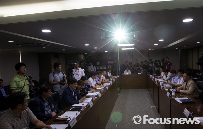 (서울=포커스뉴스) 26일 오전 정부서울청사에서 열린 가스 및 악취 발생 관계기관 안전점검회의에 참석한 정부 및 학계 관계자들이 굳은 표정을 짓고 있다.