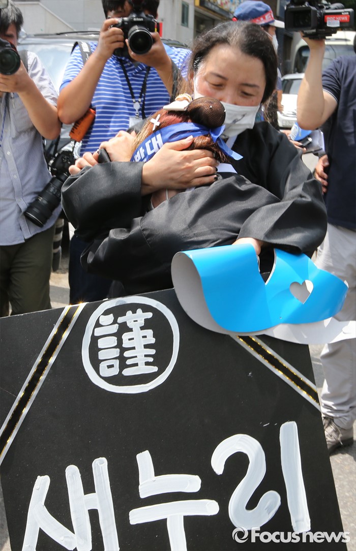 (성주=포커스뉴스) 26일 오전 경북 성주군청을 찾은 정신석 새누리당 원내대표와 지도부들이 성주군민들과 간담회를 가진 가운데 성주주민들 실신을 하고 있다.