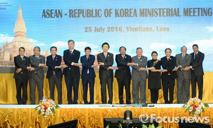윤병세 장관은 이날 오전 ASEAN과 한·중·일이 참석하는 'ASEAN+3' 외교장관회의, 미국과 러시아도 참여하는 동아시아정상회의(EAS) 외교장관회의에 참석했다.남북한을 비롯해 6자회담 당사국이 모두 참석하는 아세안지역안보포럼(ARF) 외교장관회의가 라오스의 수도 비엔티안에서 26일 오후2시(현지시각) 시작됐다. 사진은 25일 개최된 제19차 한-아세안 외교장관회의 기념촬영. 윤병세 외교장관(왼쪽에서 6번째)은 공동의장 자격으로 참석했다. 2016.07.25. <사진제공=외교부>