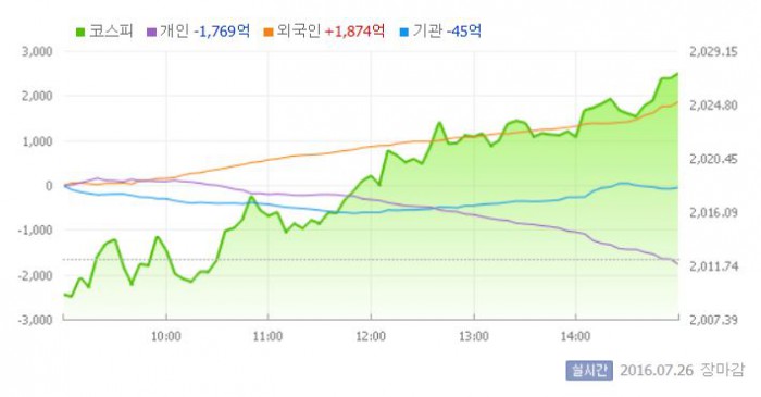 한편 이날 일본 닛케이225지수는 전일 대비 1.4% 내린 1만6383.04로 마감했다.26일 유가증권시장 <그래픽출처=네이버>
