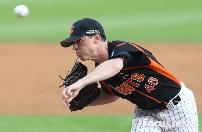 (서울=포커스뉴스) 26일 서울 잠실구장에서 열린 2016 프로야구 롯데-LG 경기에서 1회말 롯데 선발투수 레일리가 투구하고 있다.