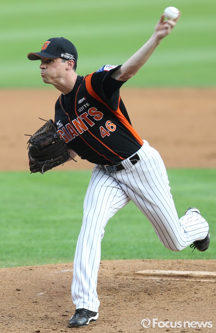 (서울=포커스뉴스) 26일 서울 잠실구장에서 열린 2016 프로야구 롯데-LG 경기에서 1회말 롯데 선발투수 레일리가 투구하고 있다.