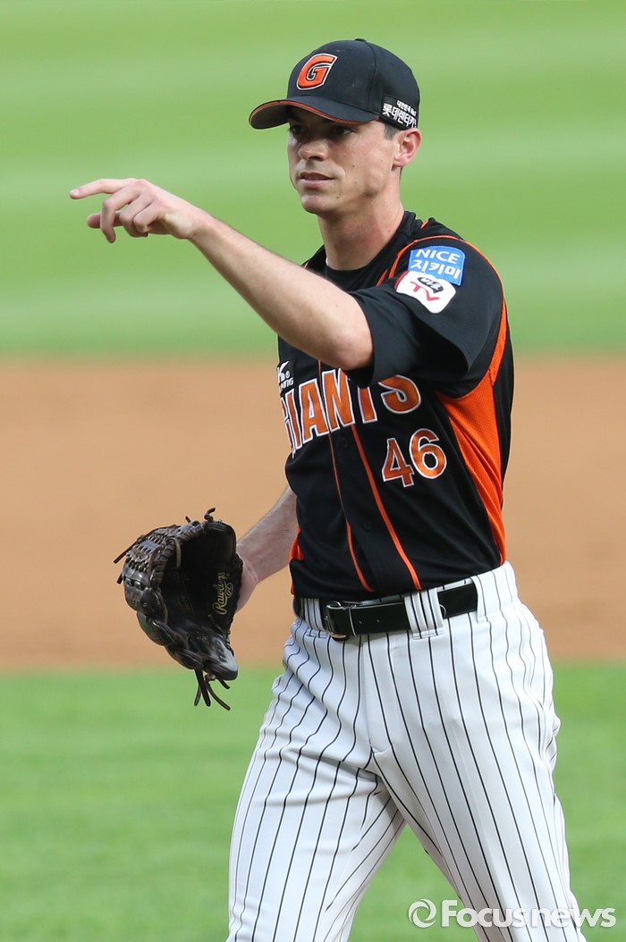 (서울=포커스뉴스) 26일 서울 잠실구장에서 열린 2016 프로야구 롯데-LG 경기 1회말 1사1루에서 롯데 선발투수 레일리가 LG 박용택 타석때 폭투로 볼이 빠진 방향을 가리키고 있다.