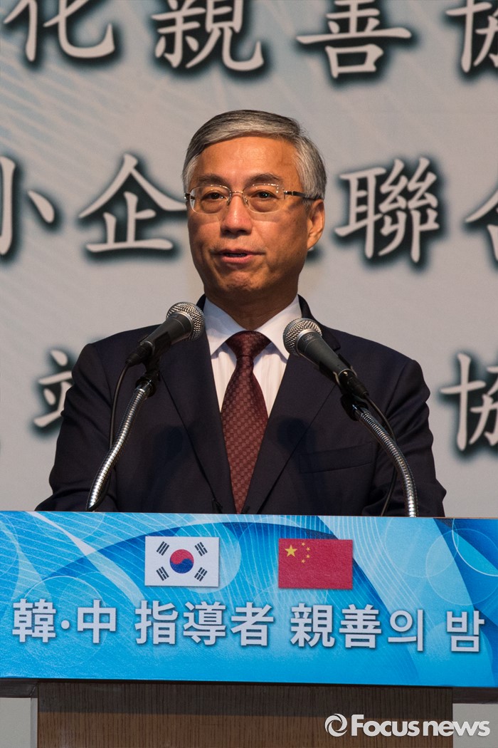 (서울=포커스뉴스) 추궈홍 주한중국대사가 26일 오후 서울 중구 롯데호텔에서 열린 '한중 지도자 친선의 밤' 행사에서 참석해 축사를 하고 있다.