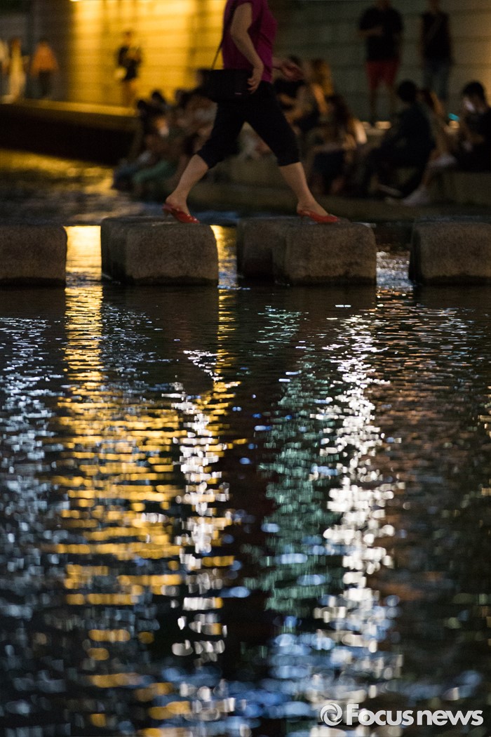 (서울=포커스뉴스) 서울과 전국 대분분 지역이 열대야인 26일 오후 서울 종로구 청계천을 찾은 시민들이 더위를 식히고 있다.