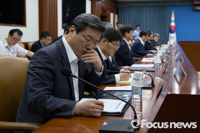 (서울=포커스뉴스) 주영섭 중소기업청장이 27일 오전 서울 세종로 정부서울청사에서 열린 경제관계장관회의에 참석해 유일호 경제부총리 겸 기획재정부 장관의 모두발언을 듣고 있다.