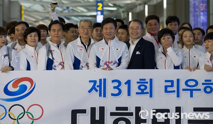 (서울=포커스뉴스) 리우올림픽에서 금메달 10개 이상, 10위권 달성을 목표로 한국 선수단 본진이 브라질 리우데자네이루로 출국했다.