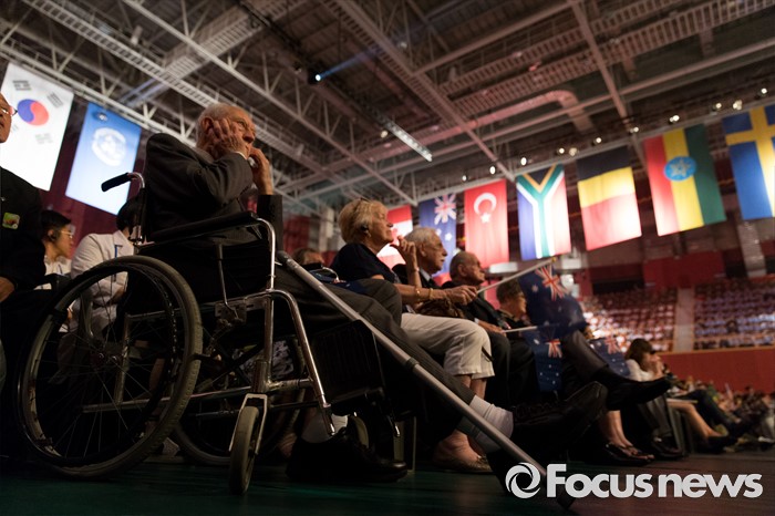 (서울=포커스뉴스) 27일 오전 서울 송파구 올림픽공원 올림픽홀에서 열린 정전협정 63주년 및 유엔군 참전의 날 기념식에서 6·25 전쟁 유엔군 참전용사들이 자리에 참석해있다.
