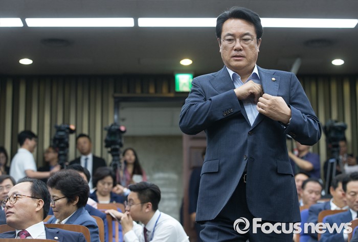 (서울=포커스뉴스) 27일 오전 서울 여의도 국회에서 열린 새누리당 의원총회에 정진석 원내대표가 참석하고 있다.