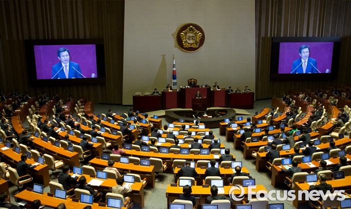 (서울=포커스뉴스) 27일 오후 서울 여의도 국회에서 열린 344회 국회(임시회) 3차 본회의에 참석한 황교안 국무총리가 2016년도 제1회 추가경정예산안에 대한 정부의 시정연설을 하고 있다.