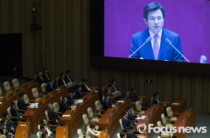 (서울=포커스뉴스) 27일 오후 서울 여의도 국회에서 열린 344회 국회(임시회) 3차 본회의에 참석한 황교안 국무총리가 2016년도 제1회 추가경정예산안에 대한 정부의 시정연설을 하고 있다.