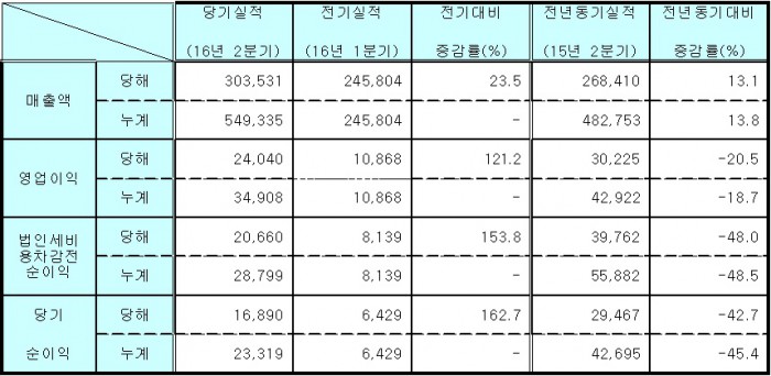 영업이익은 전년 같은 기간 대비 20.5% 감소한 240억원, 당기순이익은 169억원을 기록했다.