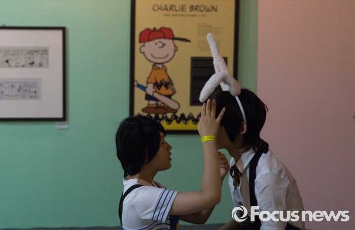 (부천=포커스뉴스) 27일 오후 경기도 부천시 한국만화박물관에서 열린 '제19회 부천국제만화축제'에 참여한 코스어들이 화장을 고치고 있다.