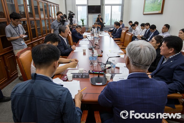 (서울=포커스뉴스) 김홍길9오른쪽) 전국한우협회 회장이 27일 오후 서울 여의도 국회에서 열린 농림해양수산위원회 부정청탁금지법소위에 참석해 김영란법 개정을 촉구 하고 있다.