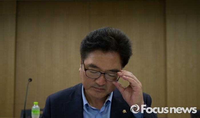 (분당=포커스뉴스) 27일 오후 경기도 성남 분당구 SK케미칼 본사에서 열린 가습기살균제 사고 진상규명과 피해구제 및 재발방지 대책마련을 위한 국정조사특별위원회 현장조사에서 우원식 위원장이 안경을 고쳐 쓰고 있다.
