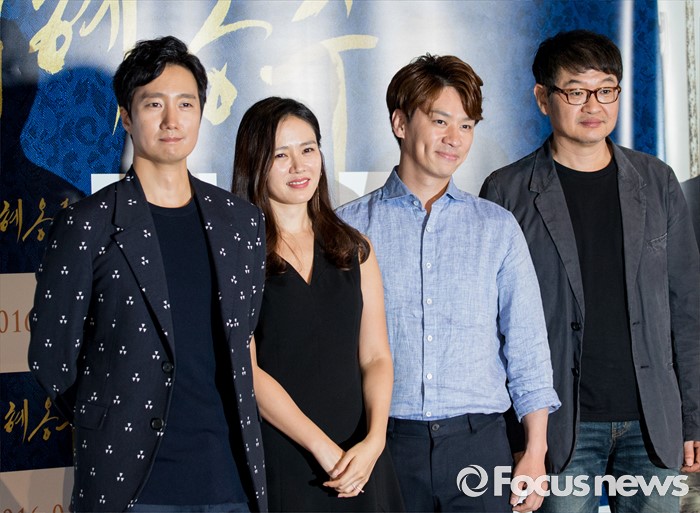 (서울=포커스뉴스) 27일 오후 서울 광진구 롯데시네마 건대입구점에서 열린 영화 '덕혜옹주' 언론 시사회에 참석한 배우 박해일(왼쪽부터), 손예진, 정상훈, 허진호 감독이 포즈를 취하고 있다.