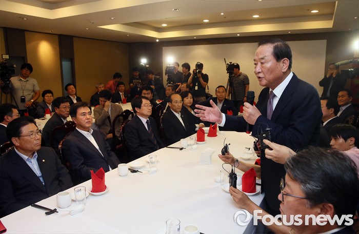 (서울=포커스뉴스) 서청원 새누리당 의원이 27일 서울 여의도 한 식당에서 열린 친박(친박근혜)계 의원 만찬회동에서 인사말을 하고 있다.