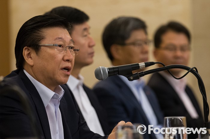 (서울=포커스뉴스) 28일 오전 서울 서초구 쉐라톤 서울 팔래스 강남 호텔에서 열린 '책임있는 소비문화 조성을 위한 기업인과의 간담회'에 참석한 한견표(왼쪽) 한국소비자원 원장이 모두발언 하고 있다.