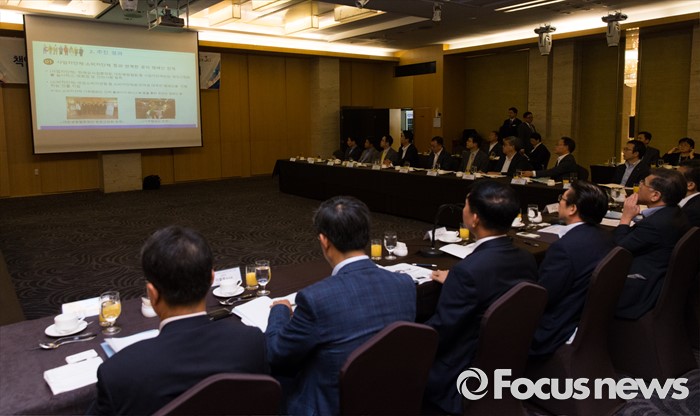 (서울=포커스뉴스) 28일 오전 서울 서초구 쉐라톤 서울 팔래스 강남 호텔에서 '책임있는 소비문화 조성을 위한 기업인과의 간담회'가 열리고 있다.