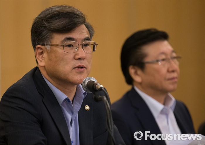 (서울=포커스뉴스) 28일 오전 서울 서초구 쉐라톤 서울 팔래스 강남 호텔에서 열린 '책임있는 소비문화 조성을 위한 기업인과의 간담회'에 참석한 김학현(왼쪽) 공정거래위원회 부위원장이 모두발언 하고 있다. 오른쪽은 한견표 한국소비자원 원장.