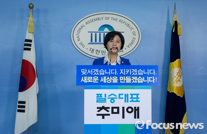 (서울=포커스뉴스) 전당대회 출마를 선언한 추미애 더불어민주당 의원이 28일 오전 서울 여의도 국회 정론관에서 당대표 후보등록 기자회견을 하고 있다.