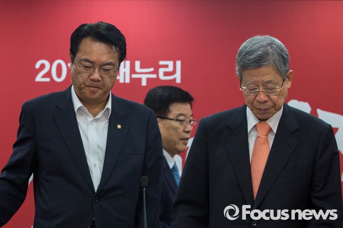 (서울=포커스뉴스) 김희옥(오른쪽) 새누리당 혁신비상대책위원장과 정진석 원내대표가 28일 오전 서울 여의도 새누리당사에서 열린 혁신비상대책위원회의에 참석하기 위해 회의실로 들어서고 있다.