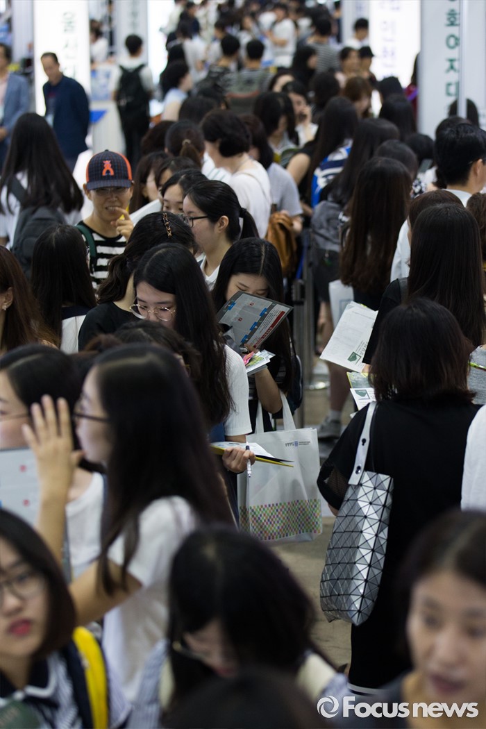 (서울=포커스뉴스) 28일 오전 서울 강남구 코엑스에서 열린 2017학년도 수시 대학입학정보박람회 행사장을 찾은 학부모와 학생들이 대학교 부스를 둘러보고 있다. 이번 박람회는 7월 28일부터 31일까지 나흘간 진행되며 전국 140개 4년제 대학이 참가한다.