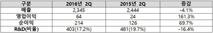 순이익은 전년 동기대비 69.7% 증가한 214억원을, 매출은 4.1% 역성장한 2345억원을 달성했다.