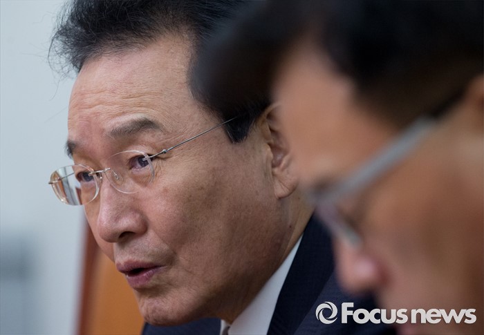 (서울=포커스뉴스) 28일 오후 서울 여의도 국회에서 열린 더불어민주당 정부세법개정안 관련 입장발표 기자간담회에 참석한 변재일 정책위의장이 발언하고 있다. 오른쪽은 박광온 기획재정위원회 간사.