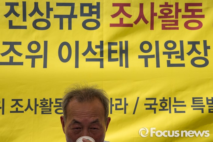 (서울=포커스뉴스) '세월호 참사 진상규명 조사활동 보장’을 위한 단식농성 이틀째인 이석태 세월호 특별조사위원장이 28일 오후 서울 종로구 광화문광장에서 농성 중 물을 마시고 있다.