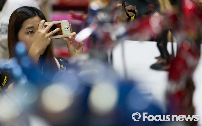 (서울=포커스뉴스) 28일 오후 서울 강남구 코엑스에서 열린 2016 서울키덜트페어를 찾은 한 시민이 피규어들을 촬영하고 있다. 키덜트페어는 7월 28일부터 31일까지 나흘간 진행되며 만화, 영화, 장난감 캐릭터 등이 다양한 모습으로 전시되어 있다.