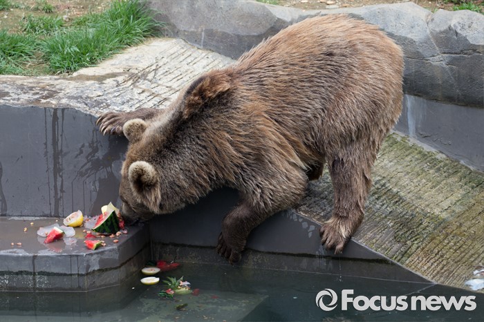 (과천=포커스뉴스) 28일 오후 경기도 과천 서울동물원에서 불곰이 얼음과일을 먹고 있다.