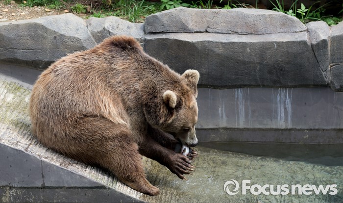 (과천=포커스뉴스) 28일 오후 경기도 과천 서울동물원에서 불곰이 얼음과일을 먹고 있다.