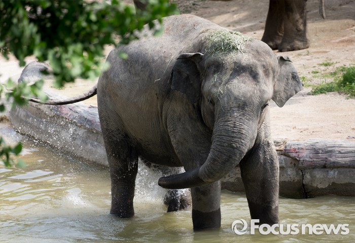 (과천=포커스뉴스) 28일 오후 경기도 과천 서울동물원에서 아시아코끼리가 물속에서 더위를 식히고 있다.